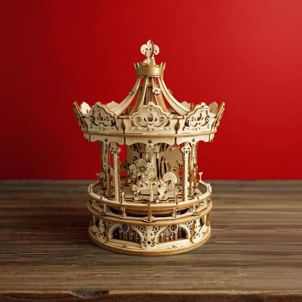 Romantisches Pferdekarussell – Holzbausatz mit Musik & Drehbewegung