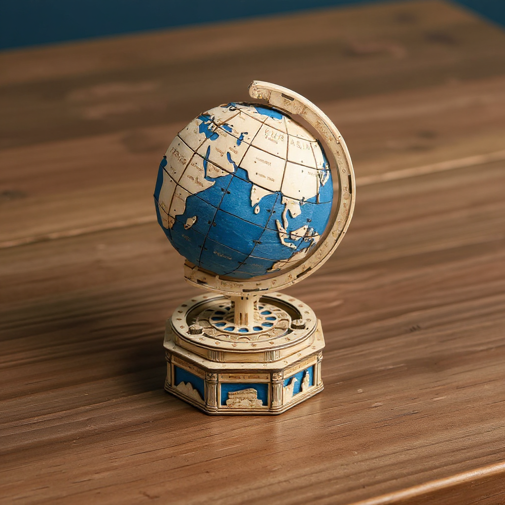 Weltentdecker-Globus – mechanischer Holzbausatz für Erwachsene & Kinder